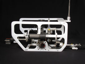 This page presents photographs of the 2013 MATE Remotely Operated Vehicle (ROV) designed and built by the Cornerstone Robotics team.