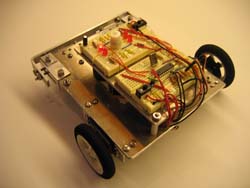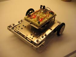 The robot uses a Dinsmore 1490 digital compass with outputs of active lows that permit LEDs to light and to drive a PIC microcontroller. Depending upon which of the pins are lows, the program reacts to turn servo motors. The servos are "hacked" so they will turn endlessly rather than stopping at a fixed point. The compass car won first place at the 2007 Florida TSA conference on April 20, 2007 and was a finalist at nationals in June, 2007.
