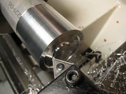 Step 6: Turn groove for O-ring. Tool holder for insert: Dorian NSR 12-3B. Positive Radius Grooving Insert: Agi-VR/Wesson VRR-3094R VR772, search VRR-3094R on Agi-VR/Wesson site. (Radius = 0.094" (48 mm)). Source: Anich Industries.