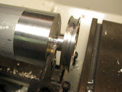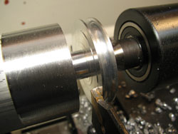 Step 8: Face the inside surface of the wheel and at the same time make the flat outer surface to the left of the groove the same width as on the right side of the groove.