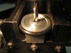 Step 9: Select a drill bit slightly larger than the motor shaft and mark the bit such that the drill bit will not penetrate where the parting will take place. Make sure that you have enough shaft left after parting to accommodate the set screw. Drill the hole into the face.