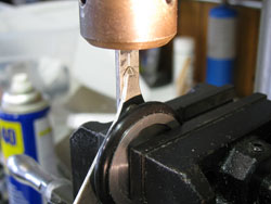 Step 13: Drill set screw hole in shaft and tap for set screw.